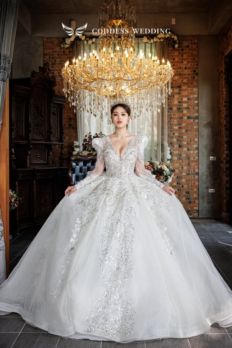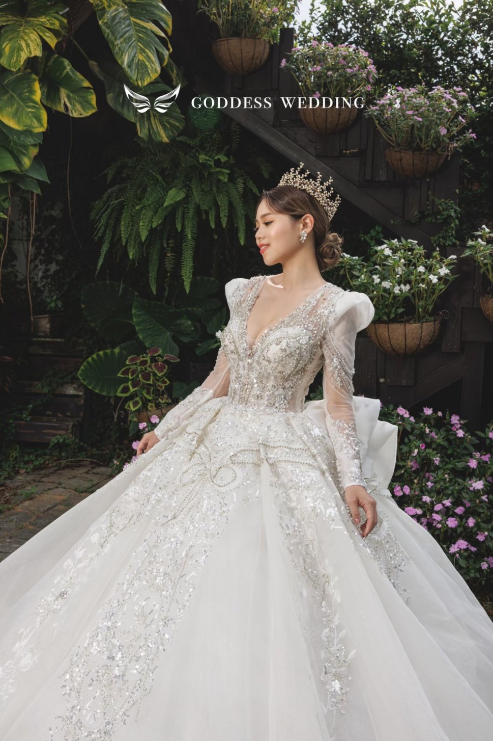 女神殿有屬於自己的禮服生產線,主打歐美風格立體剪裁,手工蕾絲,奢華釘珠 ,精緻華麗的大拖尾裙襬,並且設計多種穿搭風格可展現,穿出屬於自己的風格
