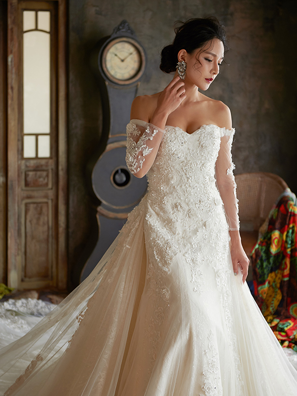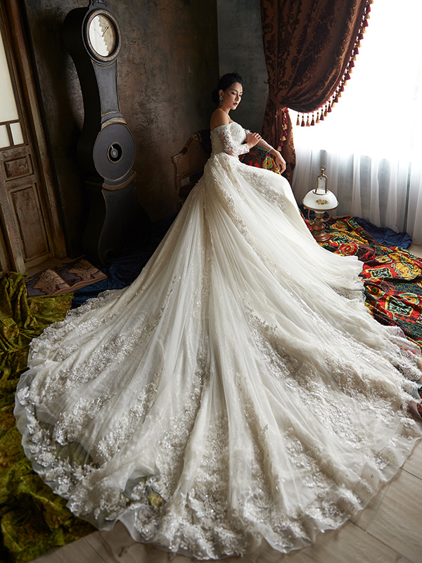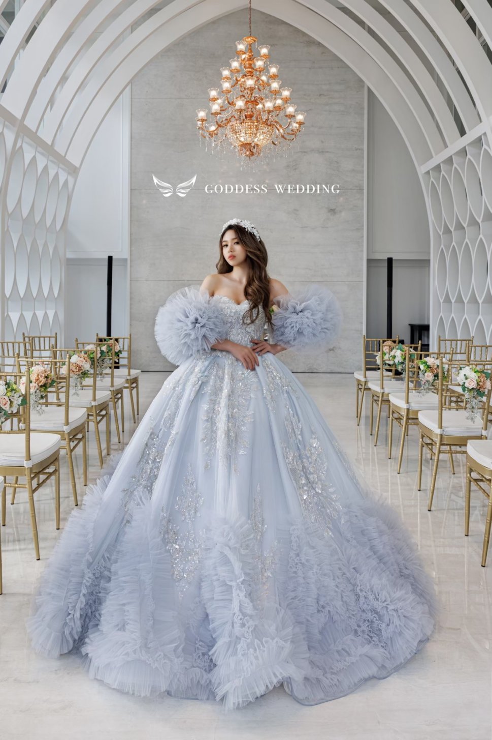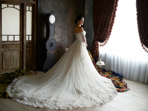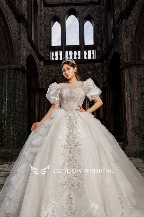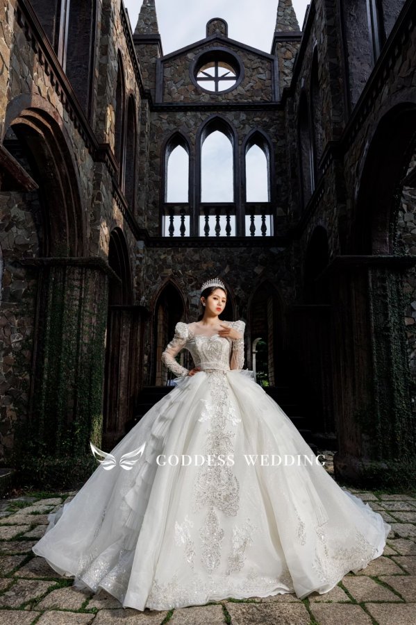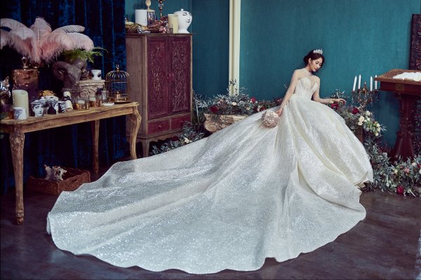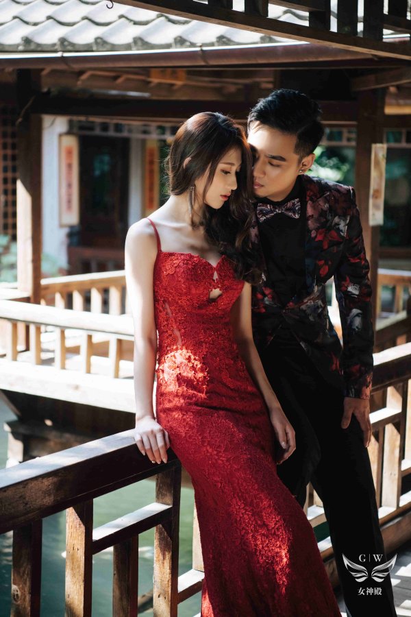 女神殿有屬於自己的禮服生產線,主打歐美風格立體剪裁,手工蕾絲,奢華釘珠 ,精緻華麗的大拖尾裙襬,並且設計2種穿搭風格可展現