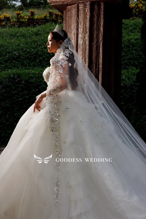 女神殿有屬於自己的禮服生產線,主打歐美風格立體剪裁,手工蕾絲,奢華釘珠 ,精緻華麗的大拖尾裙襬,並且設計多種穿搭風格可展現,穿出屬於自己的風格